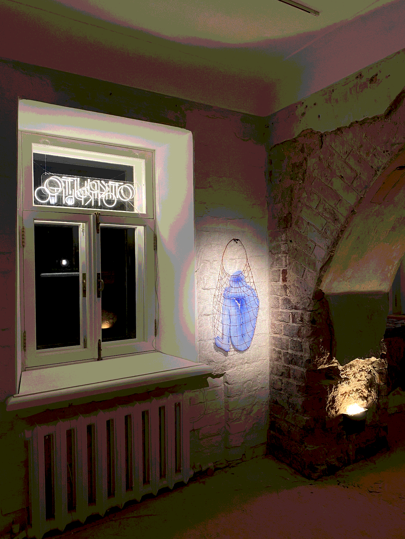 «Открытость» – это работа-перевертыш, про внутреннее состояние автора-интроверта. При создании работы использовались авосечные нити, обнаруженные в коммунальной квартире №10 второго этажа. Жители этой квартиры Бухтины были с ограничениями по здоровью, работали на дому, вязали авоськи и ленты для сомбреро на продажу.